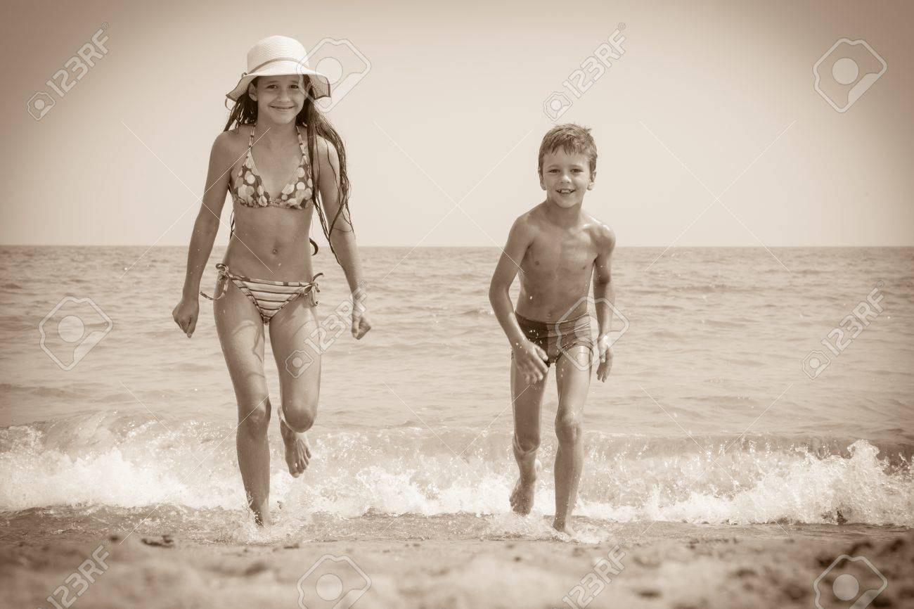 Nudisten Familienfoto
